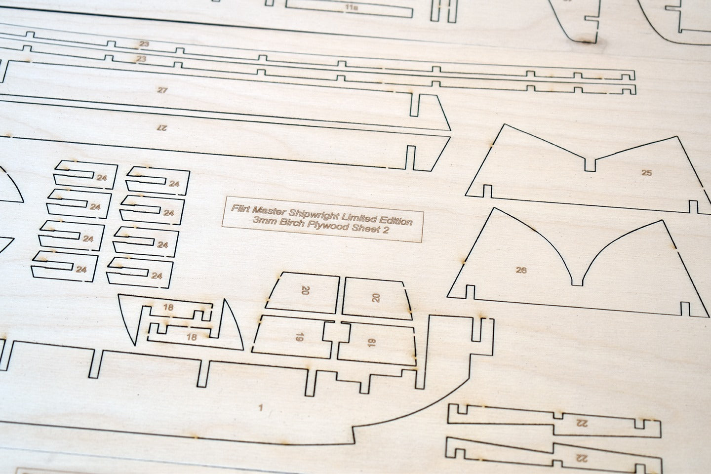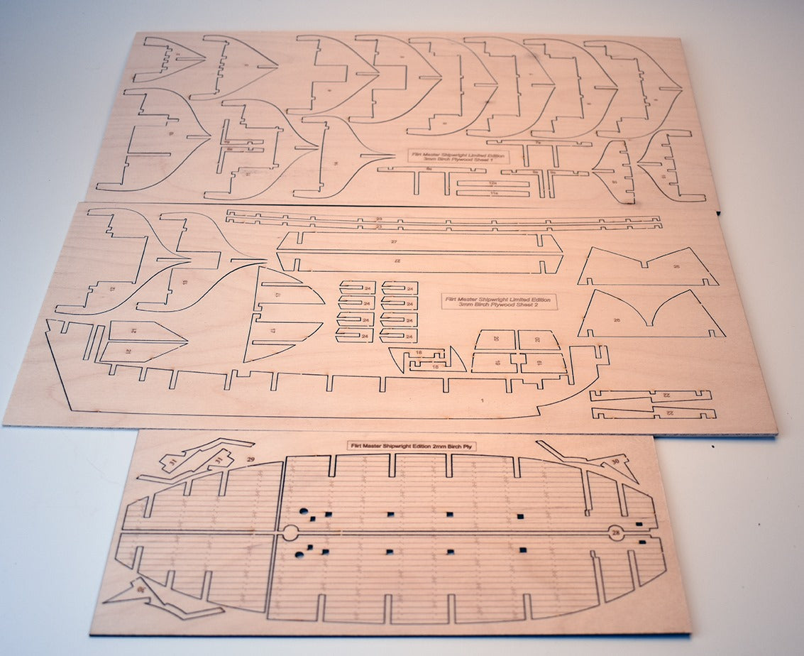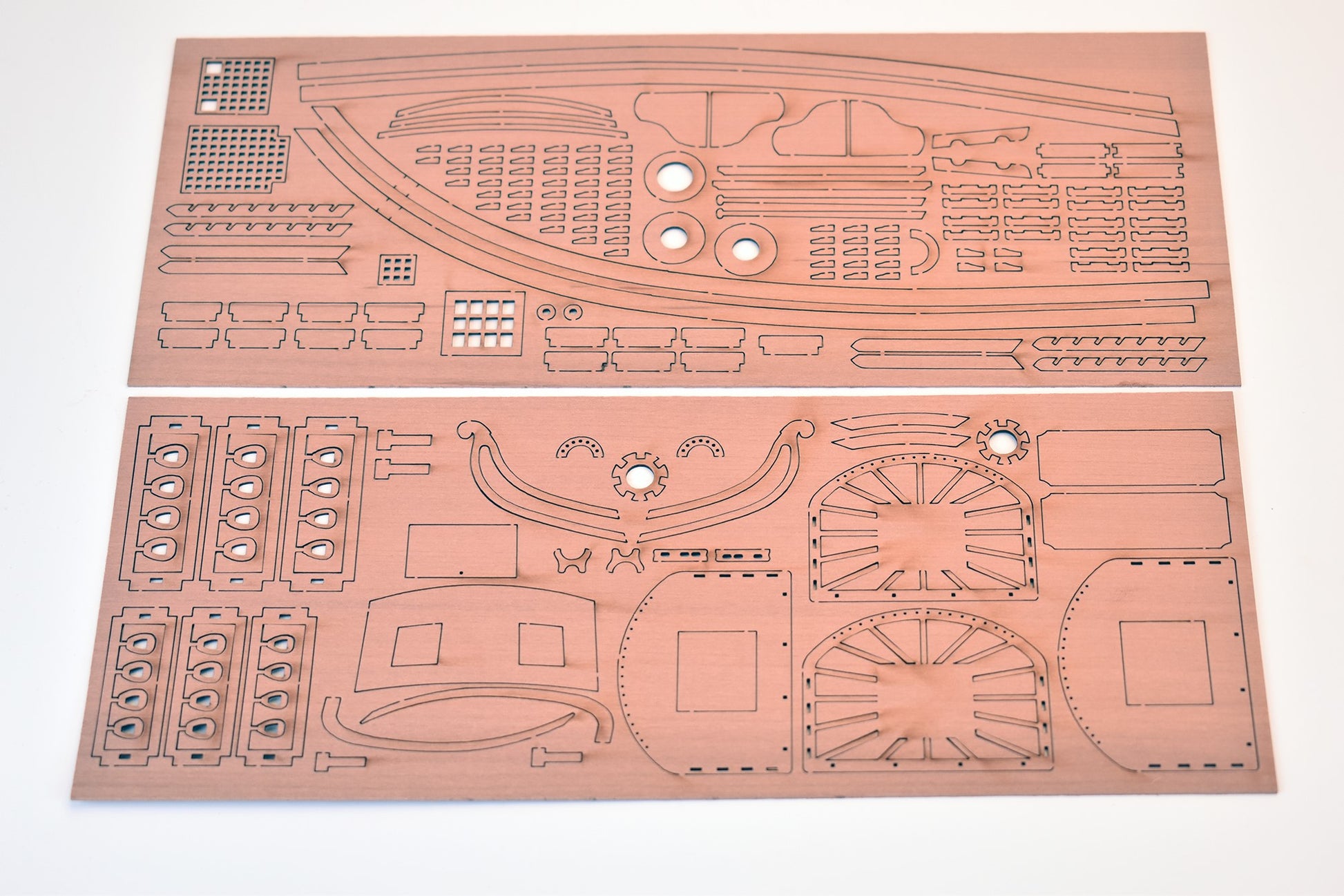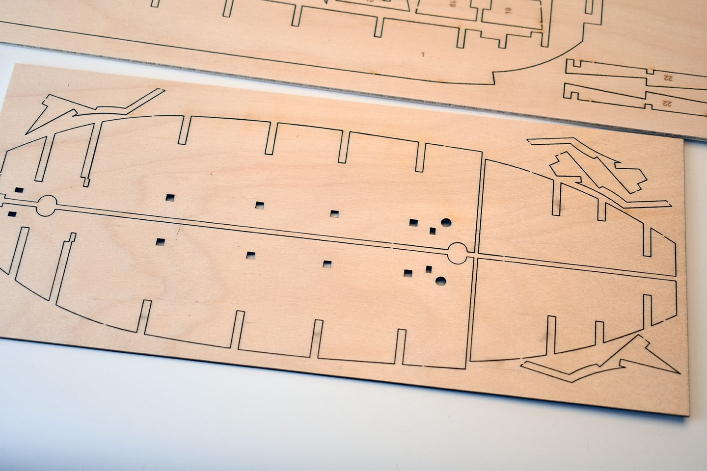 - Keel, bulkheads and lower deck laser cut using the highest quality 2 and 3mm birch plywood